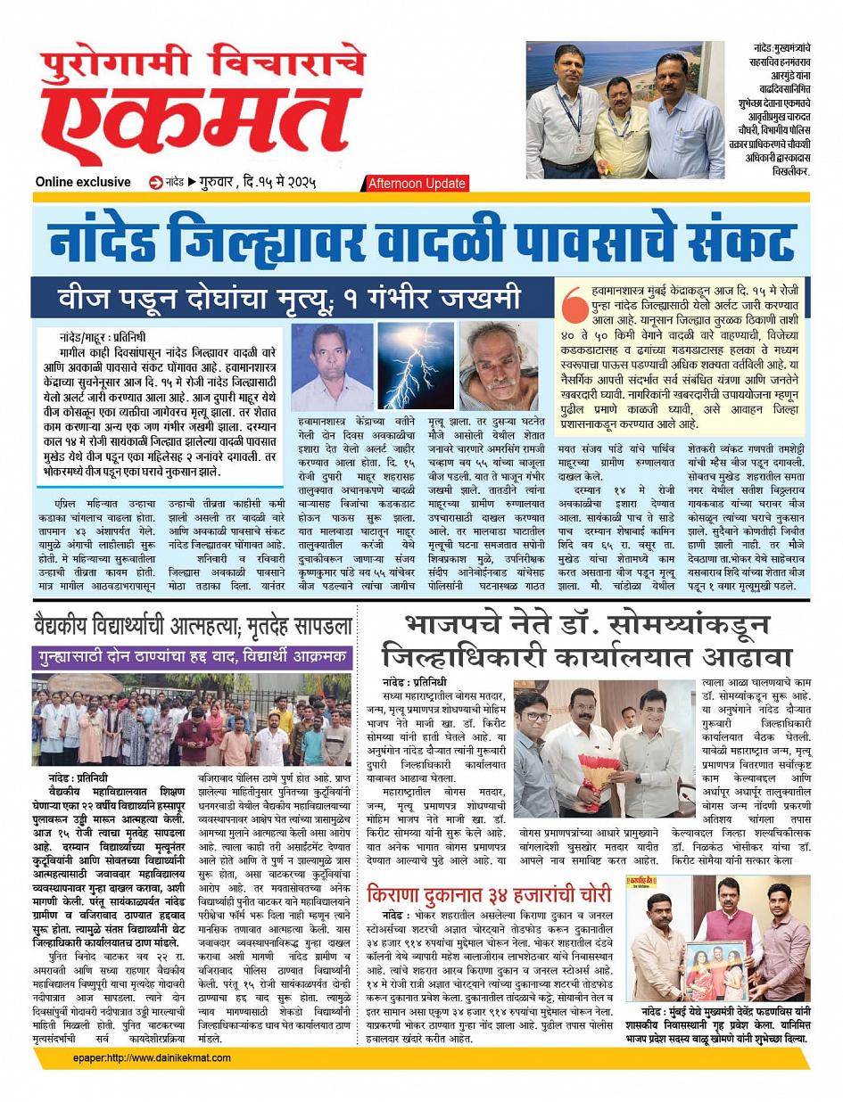 Nanded Afternoon May 15, 2025 Page 1 × Nanded Afternoon 15 April nanded live tody new-2 15 April nanded live tody new-2 15 April nanded live tody new-2