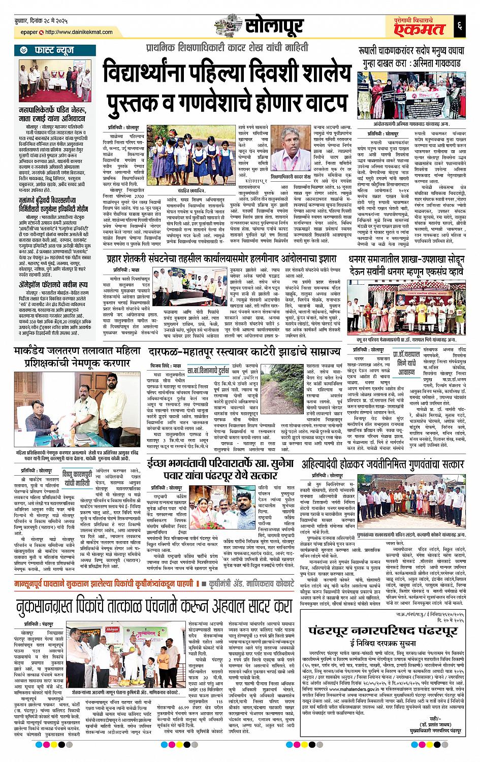 Solapur Page: 6 May 28, 2025 << First << 6 >> Last >> Page 1Page 2Page 3Page 4Page 5Page 6Page 7Page 8 × Solapur page- 1page- 2page- 3page- 4page- 5page- 6page- 7page- 8 << First << 6 >> Last >> page- 1page- 2page- 3page- 4page- 5page- 6page- 7page- 8 page- 6
