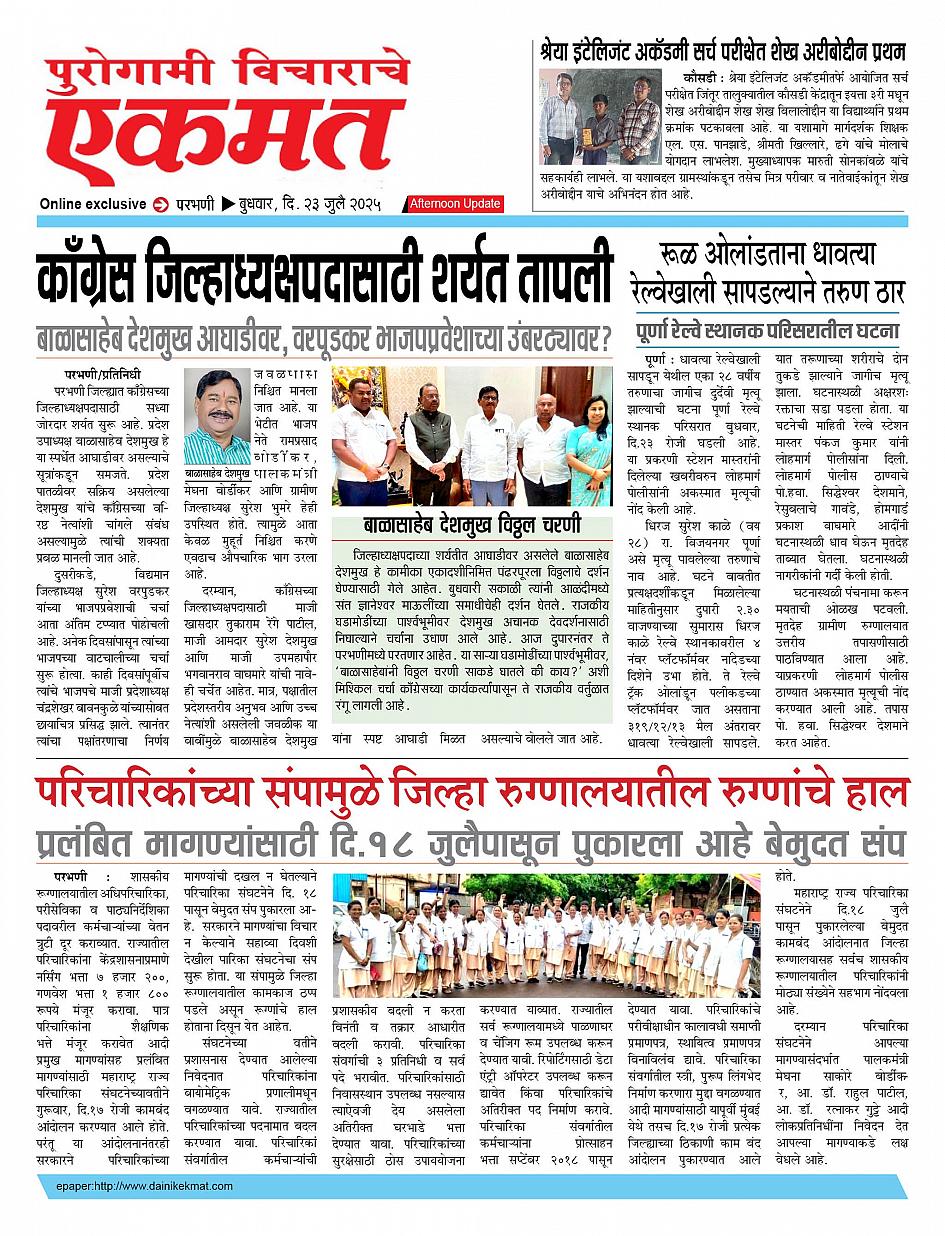 parbhani Afternoon July 23, 2025 Page 1 × parbhani Afternoon 23 Jully pbn buletin 2025 23 Jully pbn buletin 2025 23 Jully pbn buletin 2025