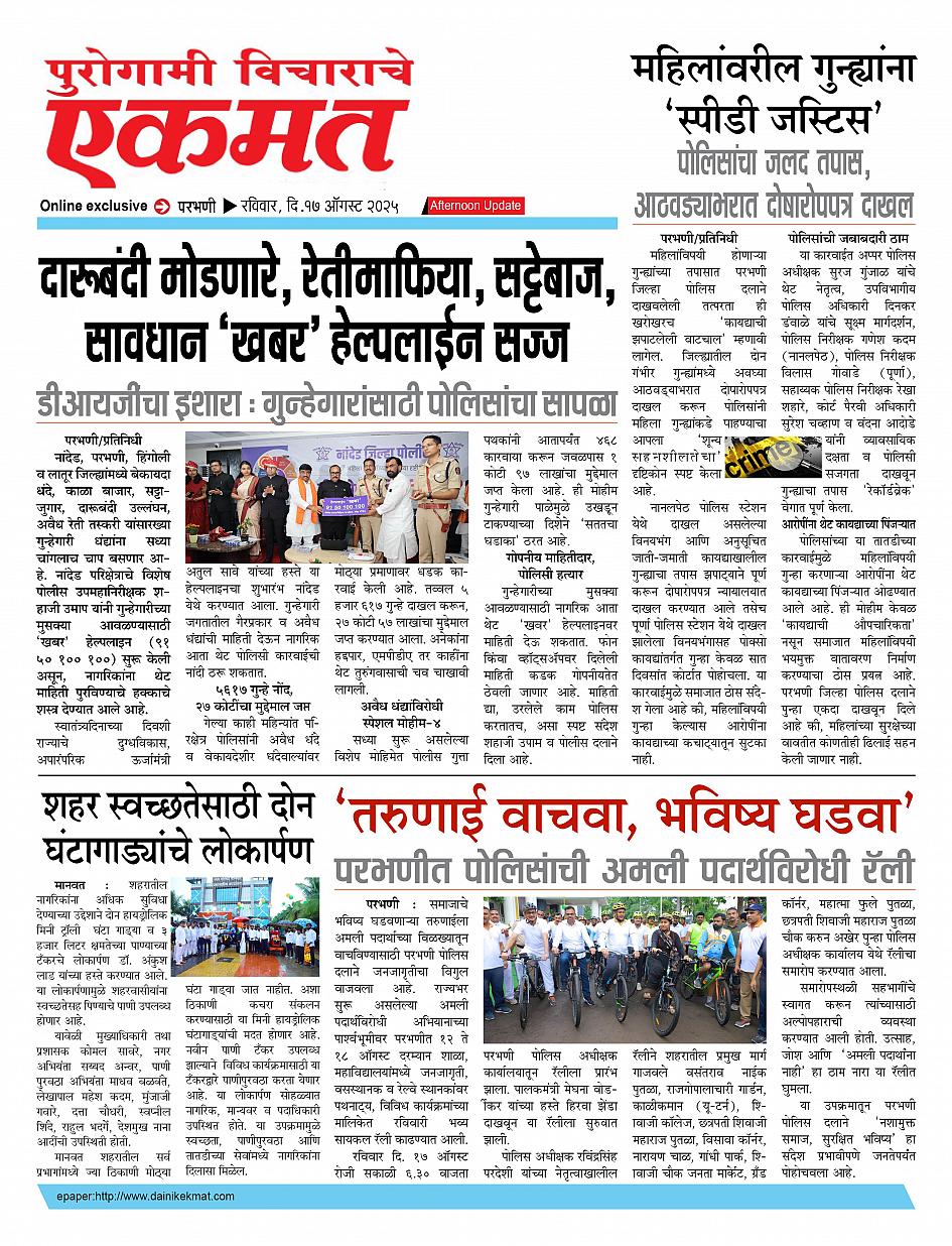parbhani Afternoon August 17, 2025 Page 1 × parbhani Afternoon 17 Aug pbn buletin 2025 17 Aug pbn buletin 2025 17 Aug pbn buletin 2025