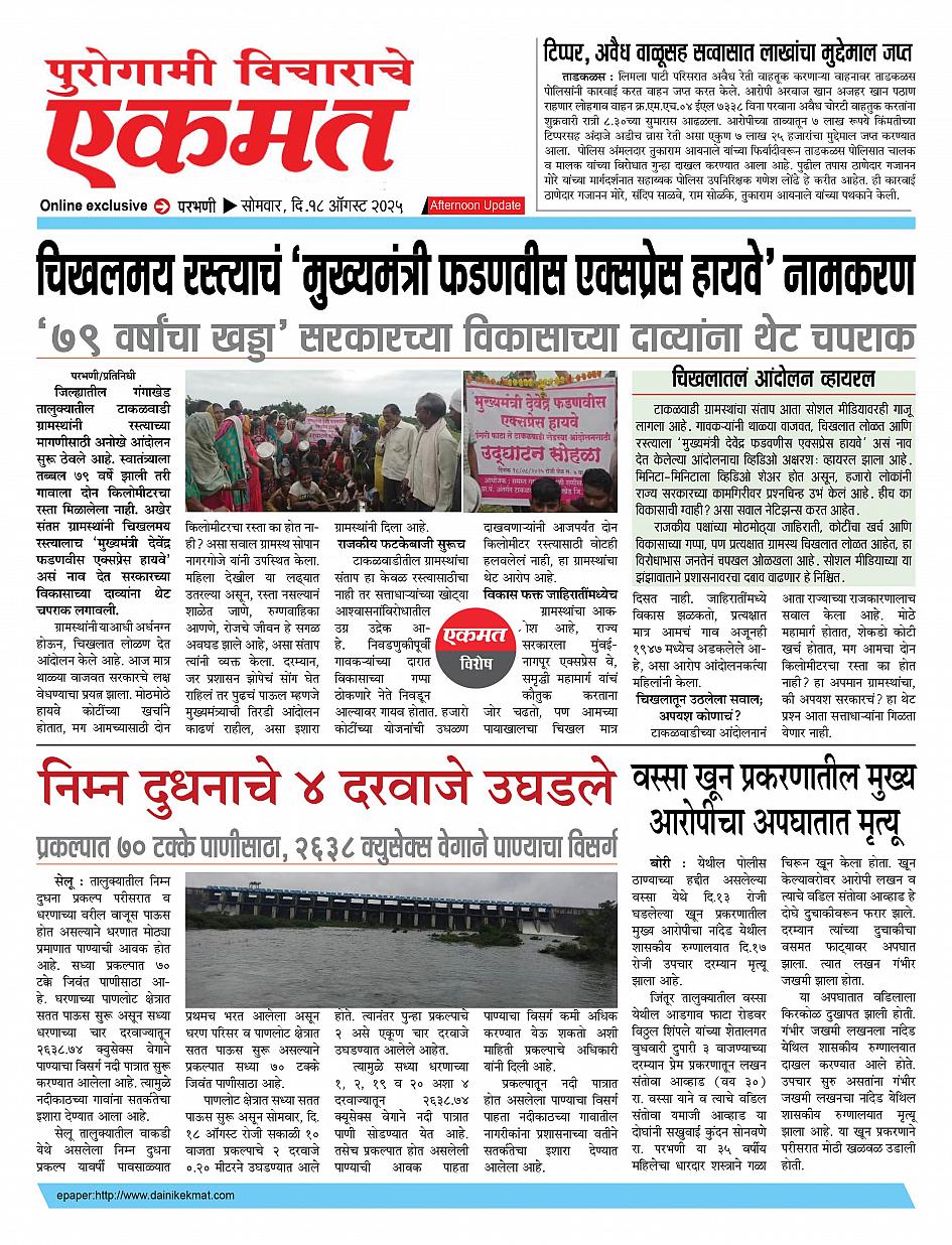 parbhani Afternoon August 18, 2025 Page 1 × parbhani Afternoon 18 Aug pbn buletin 2025 18 Aug pbn buletin 2025 18 Aug pbn buletin 2025