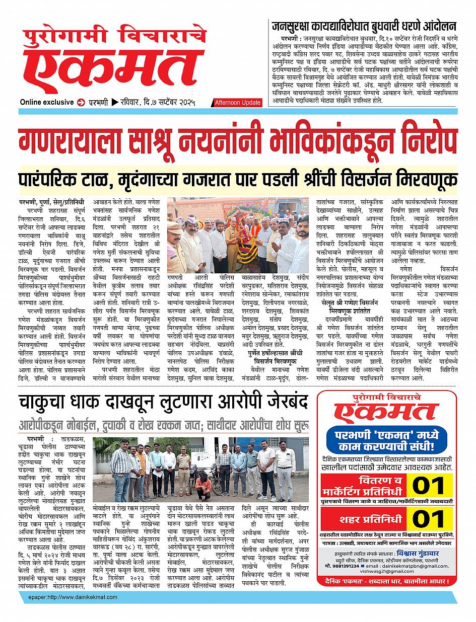 parbhani Afternoon September 07, 2025 Page 1 × parbhani Afternoon 07 Sept pbn buletin 2025 07 Sept pbn buletin 2025 07 Sept pbn buletin 2025
