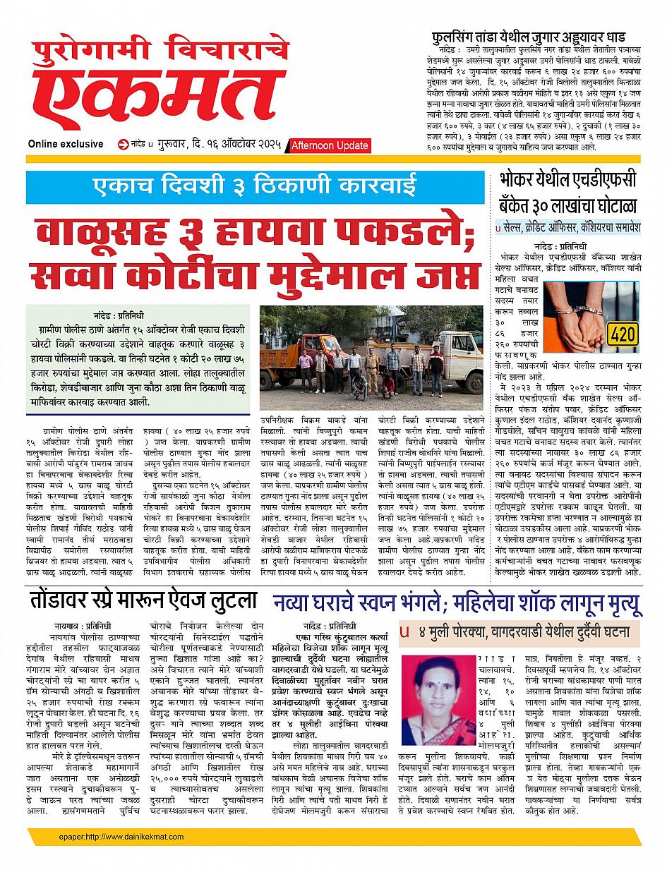 Nanded Afternoon October 16, 2025 Page 1 × Nanded Afternoon 16 Octo Nanded live new 1 16 Octo Nanded live new 1 16 Octo Nanded live new 1