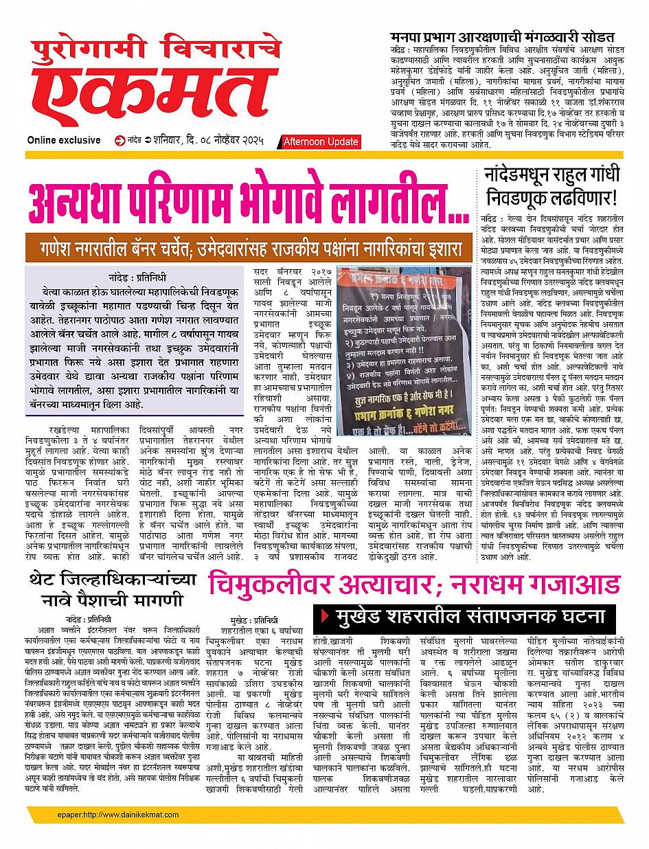 Nanded Afternoon November 08, 2025 Page 1 × Nanded Afternoon 08 Nov Nanded live page 08 Nov Nanded live page 08 Nov Nanded live page