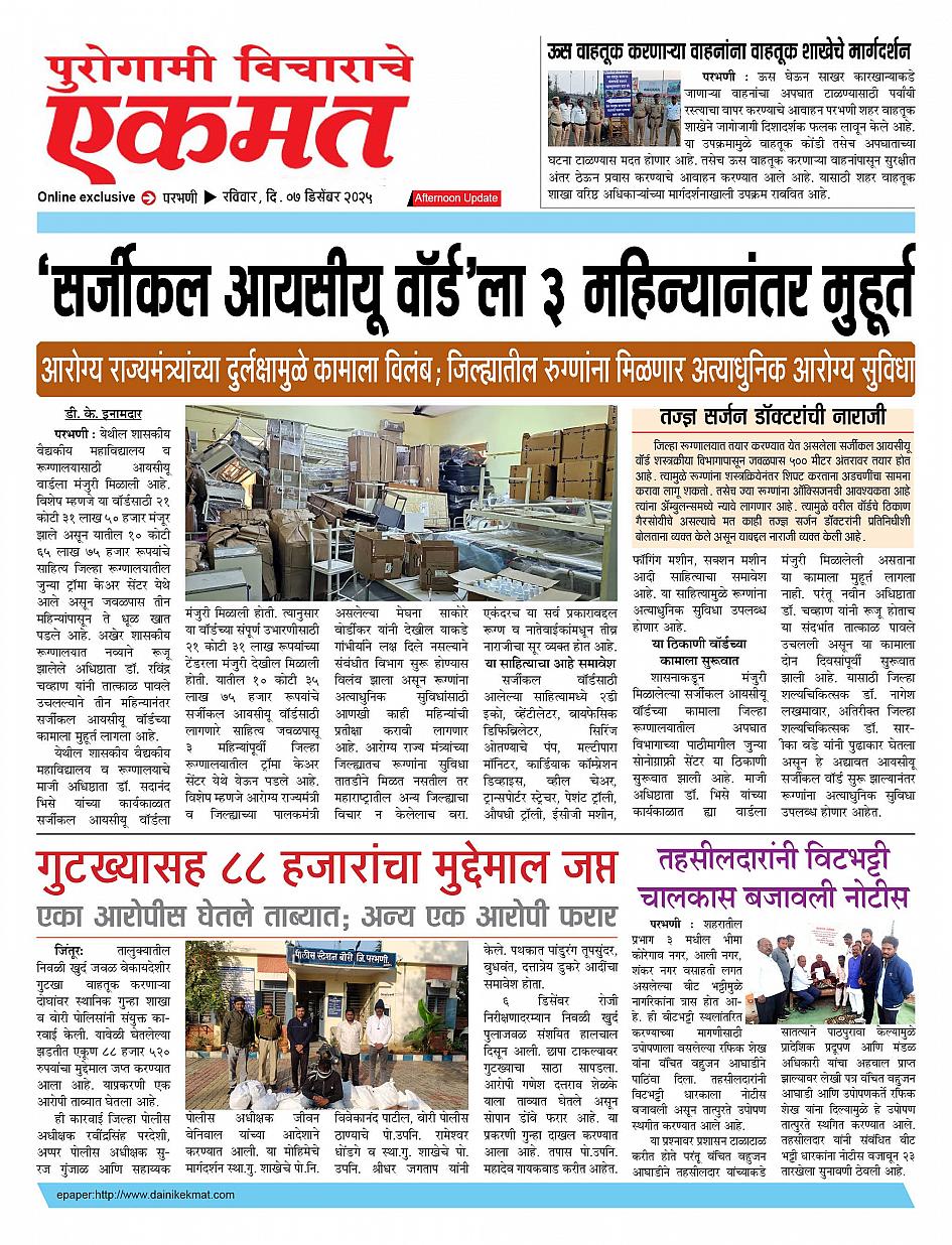 parbhani Afternoon December 07, 2025 Page 1 × parbhani Afternoon 7 Dece2025 Pbn bulletin 7 Dece2025 Pbn bulletin 7 Dece2025 Pbn bulletin