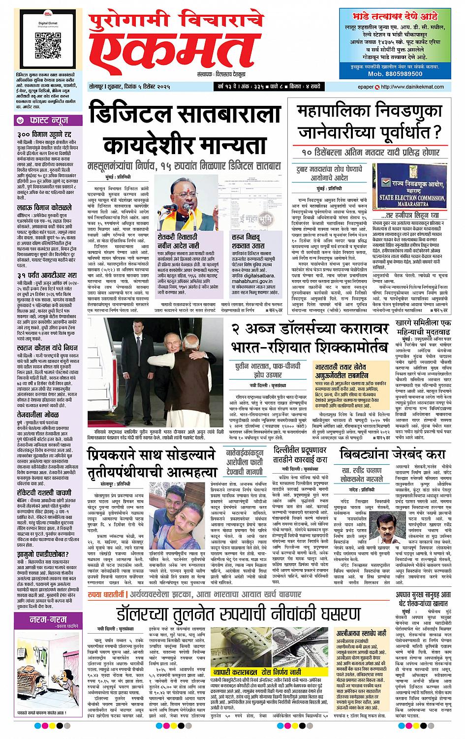 Solapur December 05, 2025 << First << 1 >> Last >> Page 1Page 2Page 3Page 4Page 5Page 6Page 7Page 8 × Solapur page- 1page- 2page- 3page- 4page- 5page- 6page- 7page- 8 << First << 1 >> Last >> page- 1page- 2page- 3page- 4page- 5page- 6page- 7page- 8 page- 1