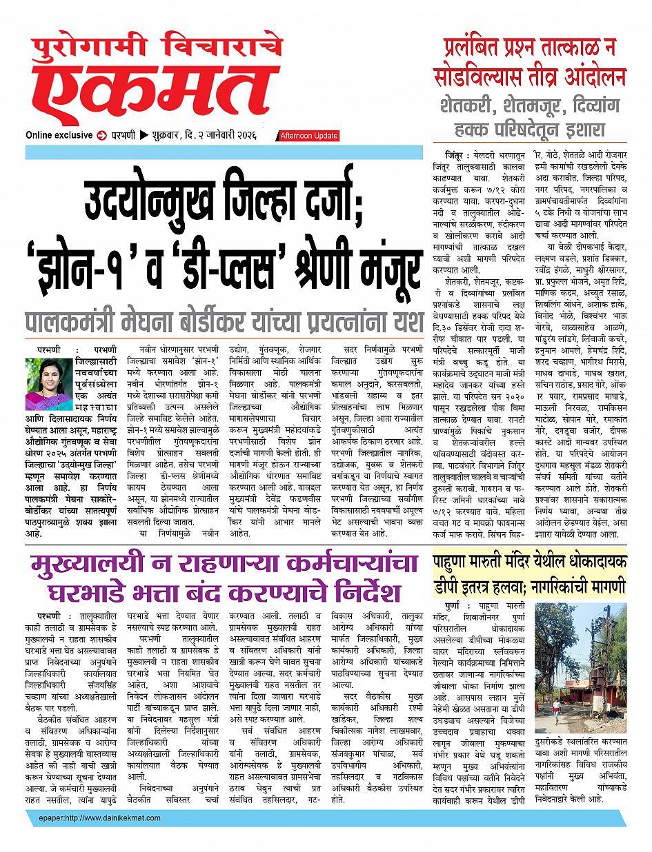 parbhani Afternoon January 02, 2026 Page 1 × parbhani Afternoon 02 Jane buletin 2025 02 Jane buletin 2025 02 Jane buletin 2025