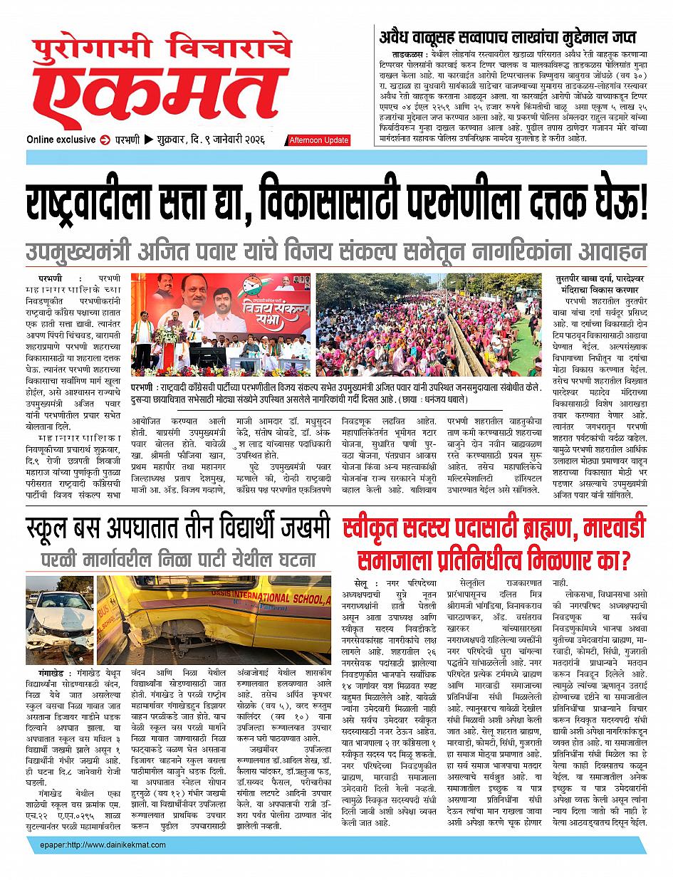 parbhani Afternoon January 09, 2026 Page 1 × parbhani Afternoon 09 Jane buletin 2025 09 Jane buletin 2025 09 Jane buletin 2025