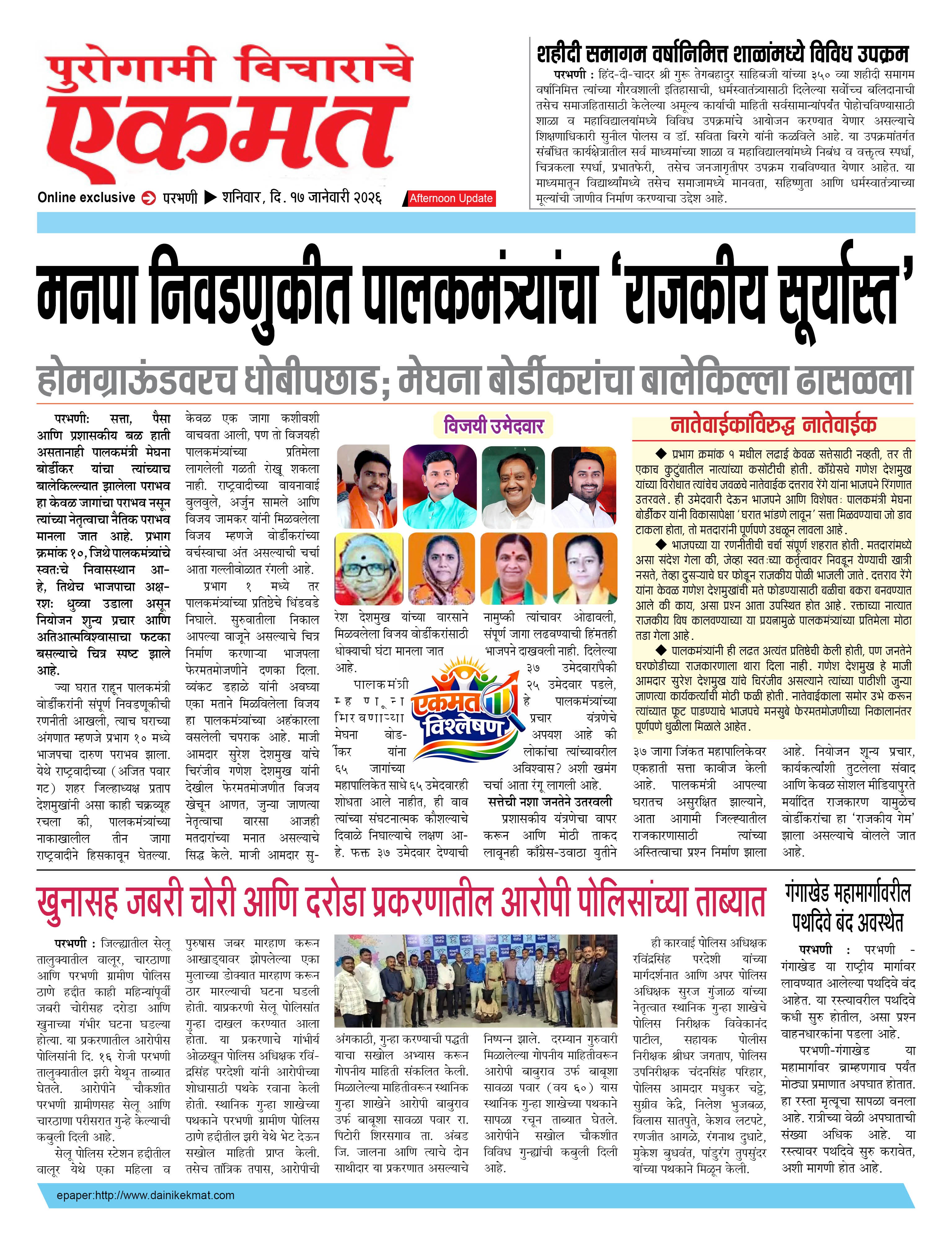 parbhani Afternoon January 17, 2026 Page 1 × parbhani Afternoon 17 Jane buletin 2025 17 Jane buletin 2025 17 Jane buletin 2025