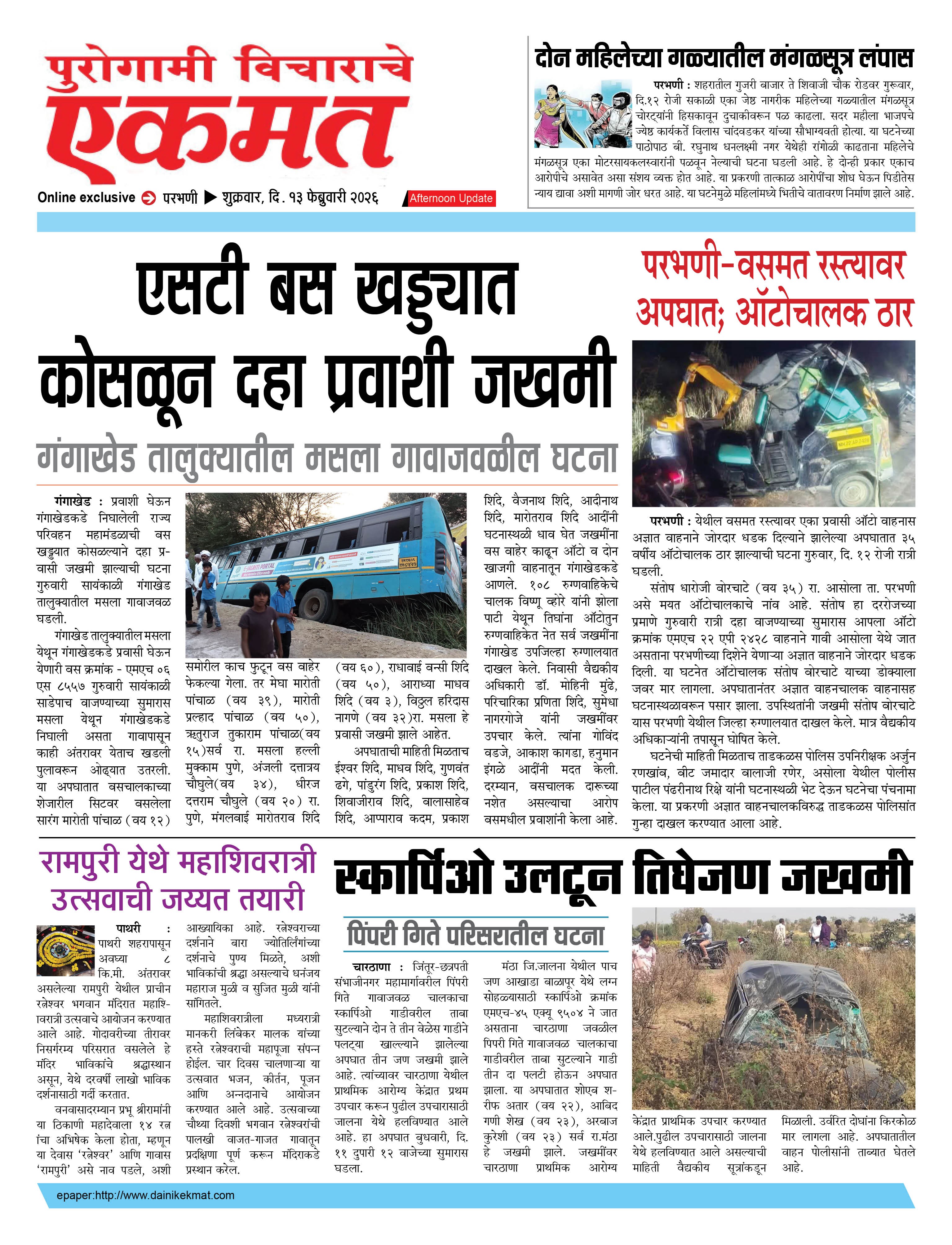 parbhani Afternoon February 13, 2026 Page 1 × parbhani Afternoon 13 Feb buletin 2026 13 Feb buletin 2026 13 Feb buletin 2026