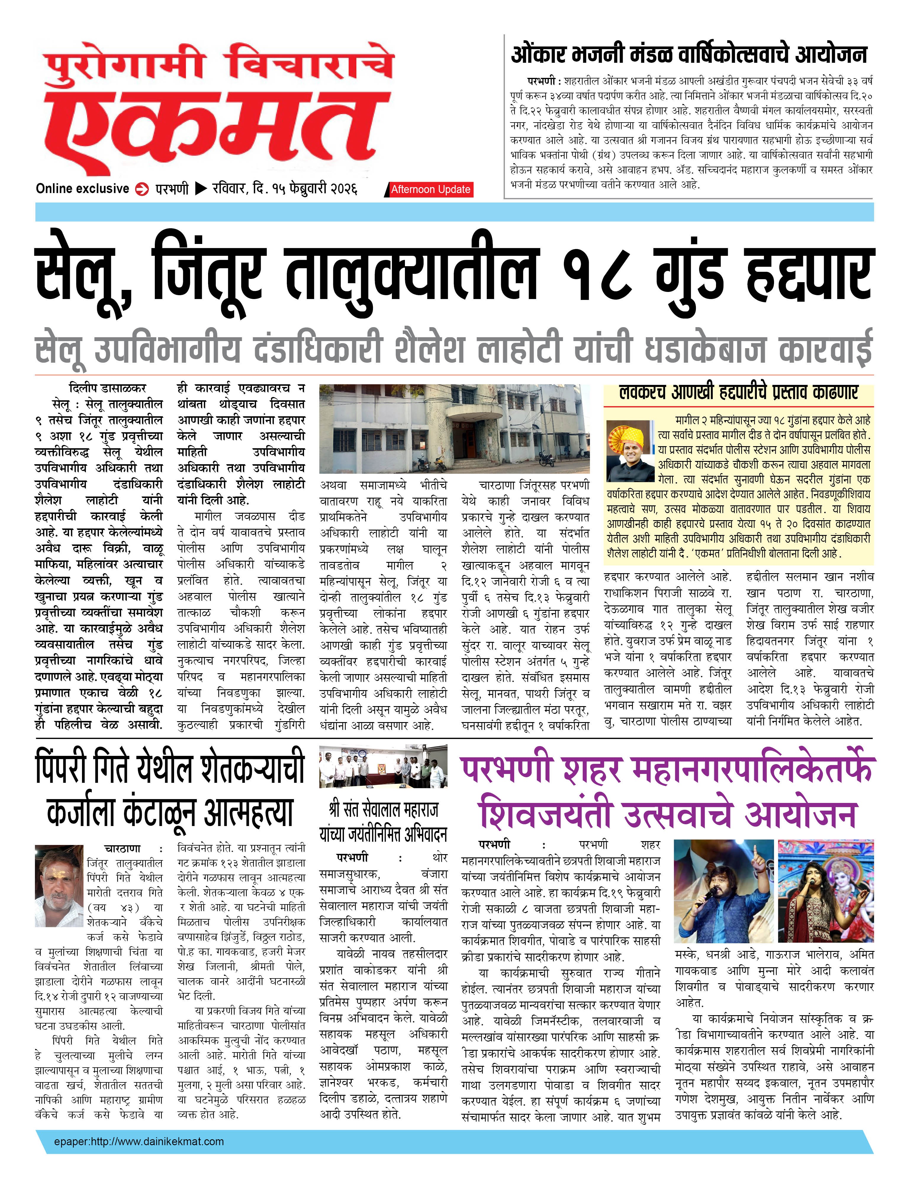 parbhani Afternoon February 15, 2026 Page 1 × parbhani Afternoon 15 Feb buletin 2026 15 Feb buletin 2026 15 Feb buletin 2026