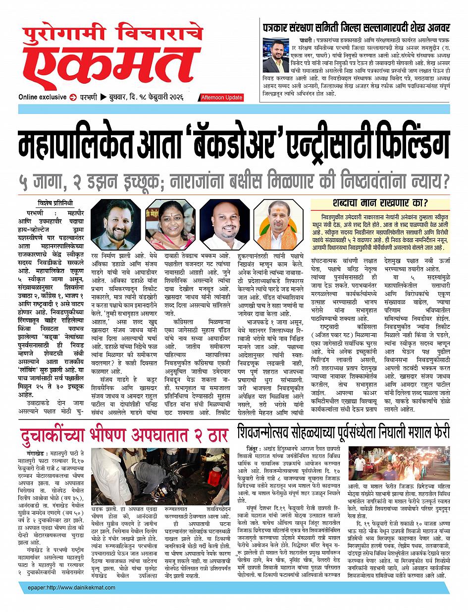 parbhani Afternoon February 18, 2026 Page 1 × parbhani Afternoon 18 Feb buletin 2026 18 Feb buletin 2026 18 Feb buletin 2026