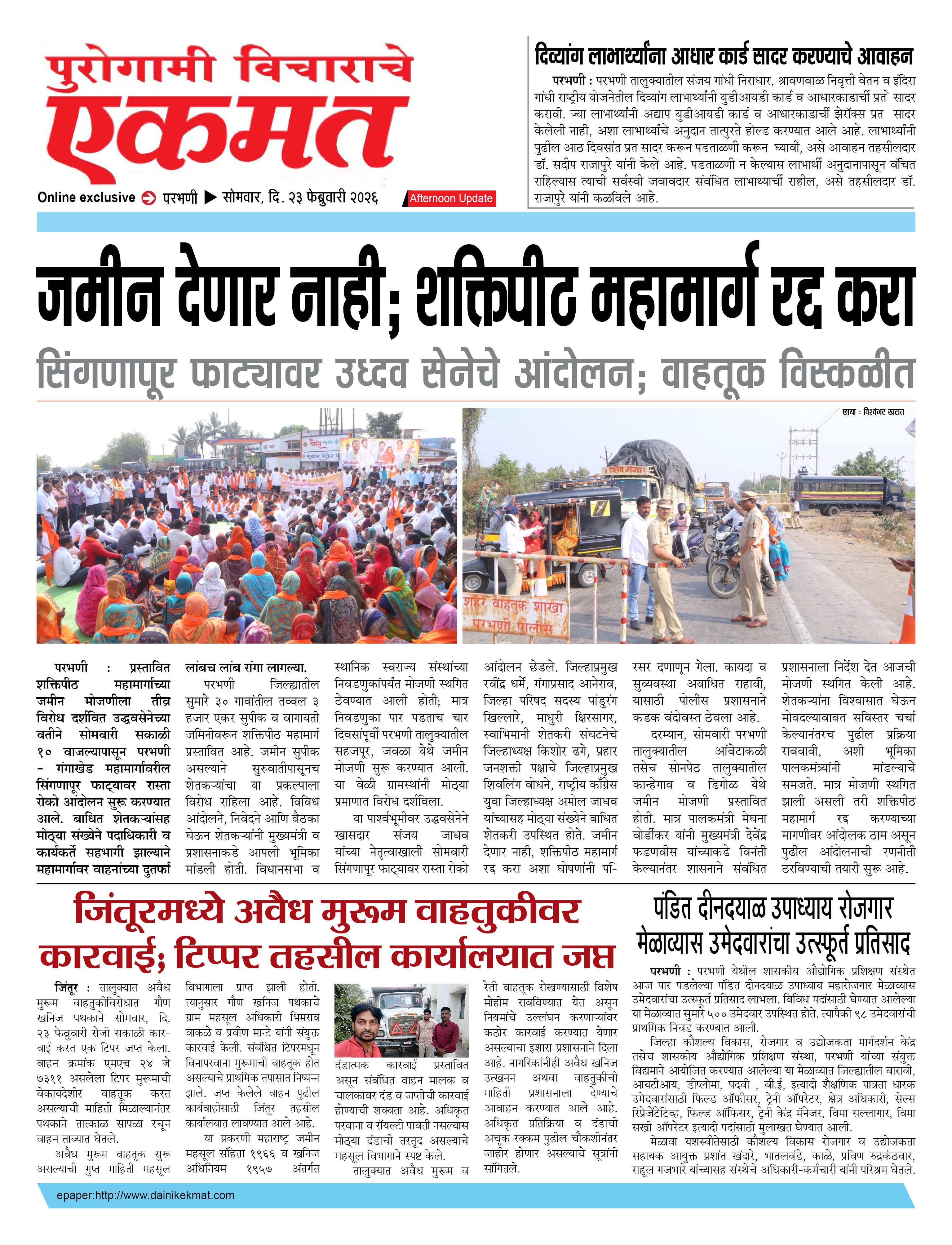 parbhani Afternoon February 23, 2026 Page 1 × parbhani Afternoon 23 Feb buletin 2026 23 Feb buletin 2026 23 Feb buletin 2026
