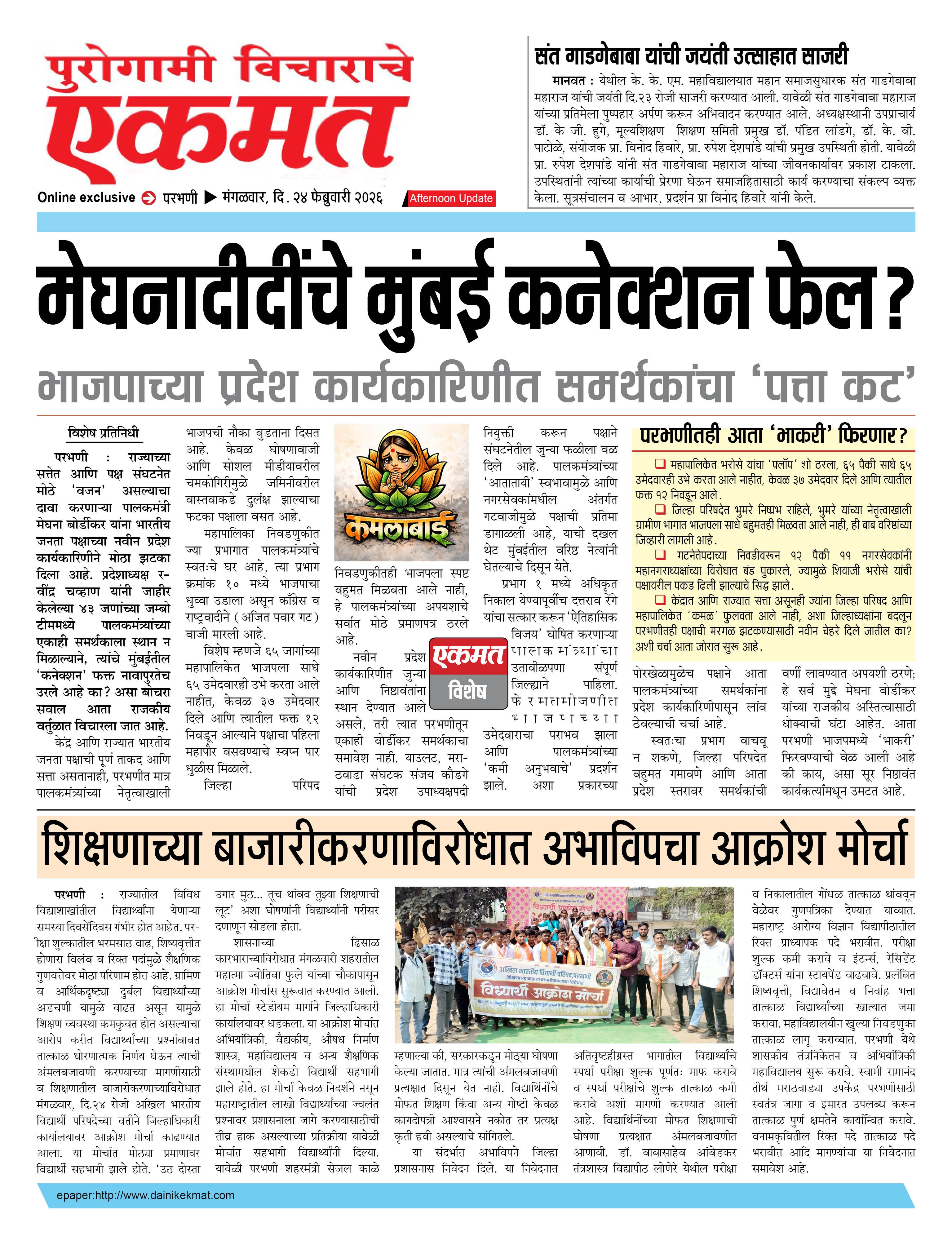 parbhani Afternoon February 24, 2026 Page 1 × parbhani Afternoon 24 Feb buletin 2026 24 Feb buletin 2026 24 Feb buletin 2026