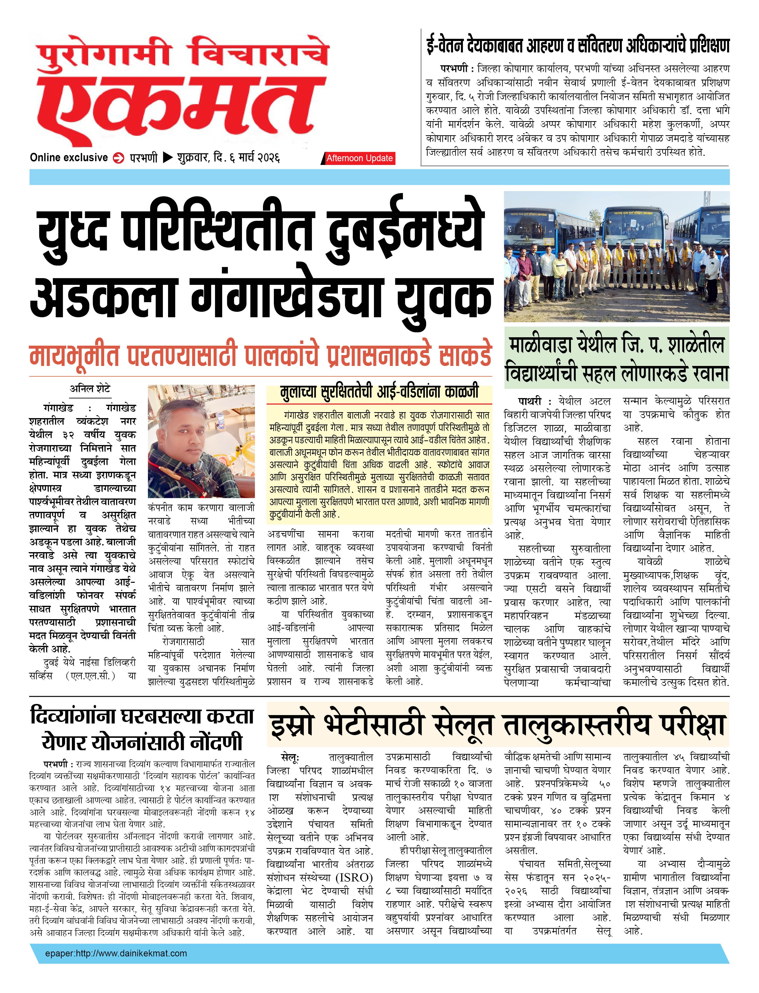 parbhani Afternoon March 06, 2026 Page 1 × parbhani Afternoon 6 March 2026 buletin 6 March 2026 buletin 6 March 2026 buletin