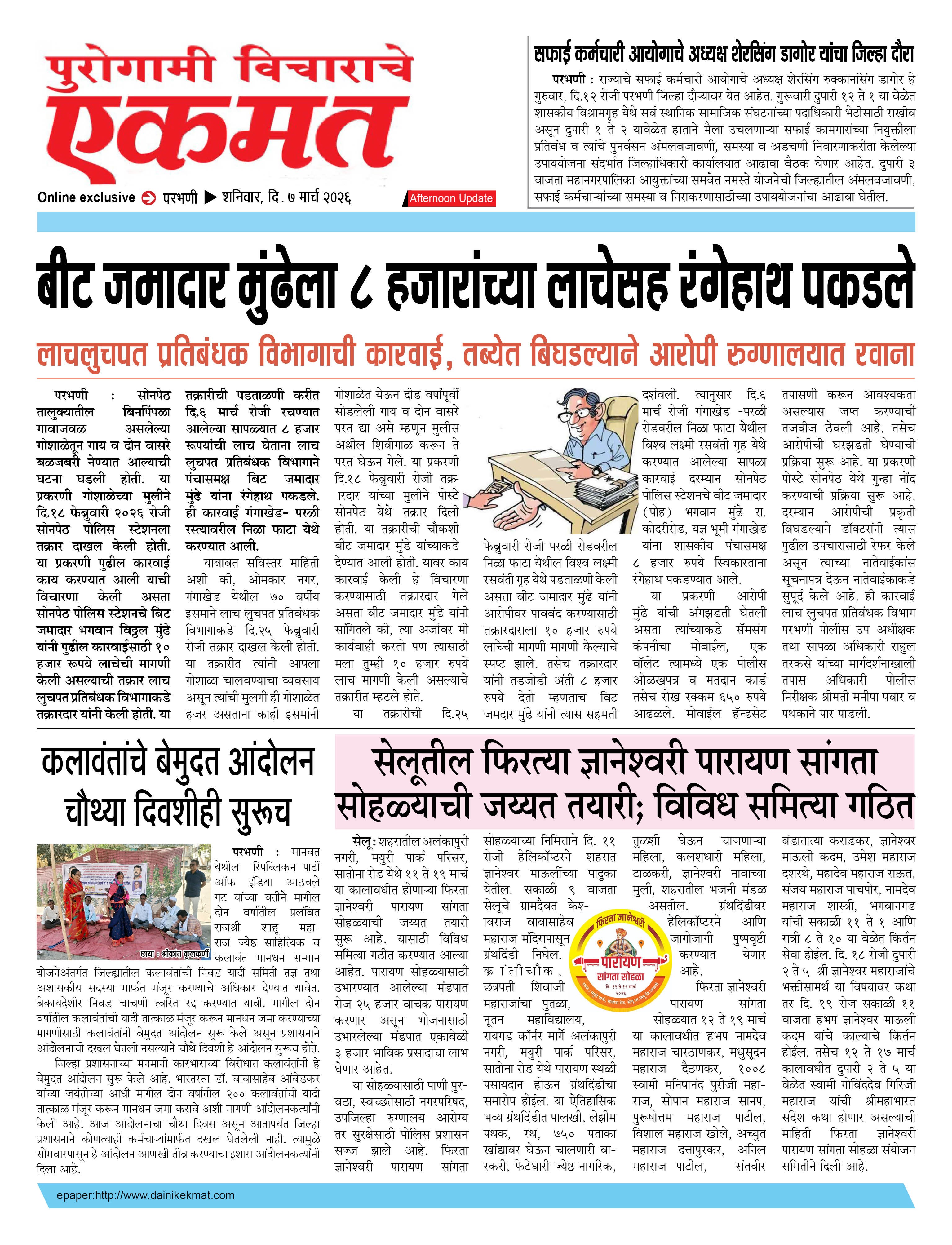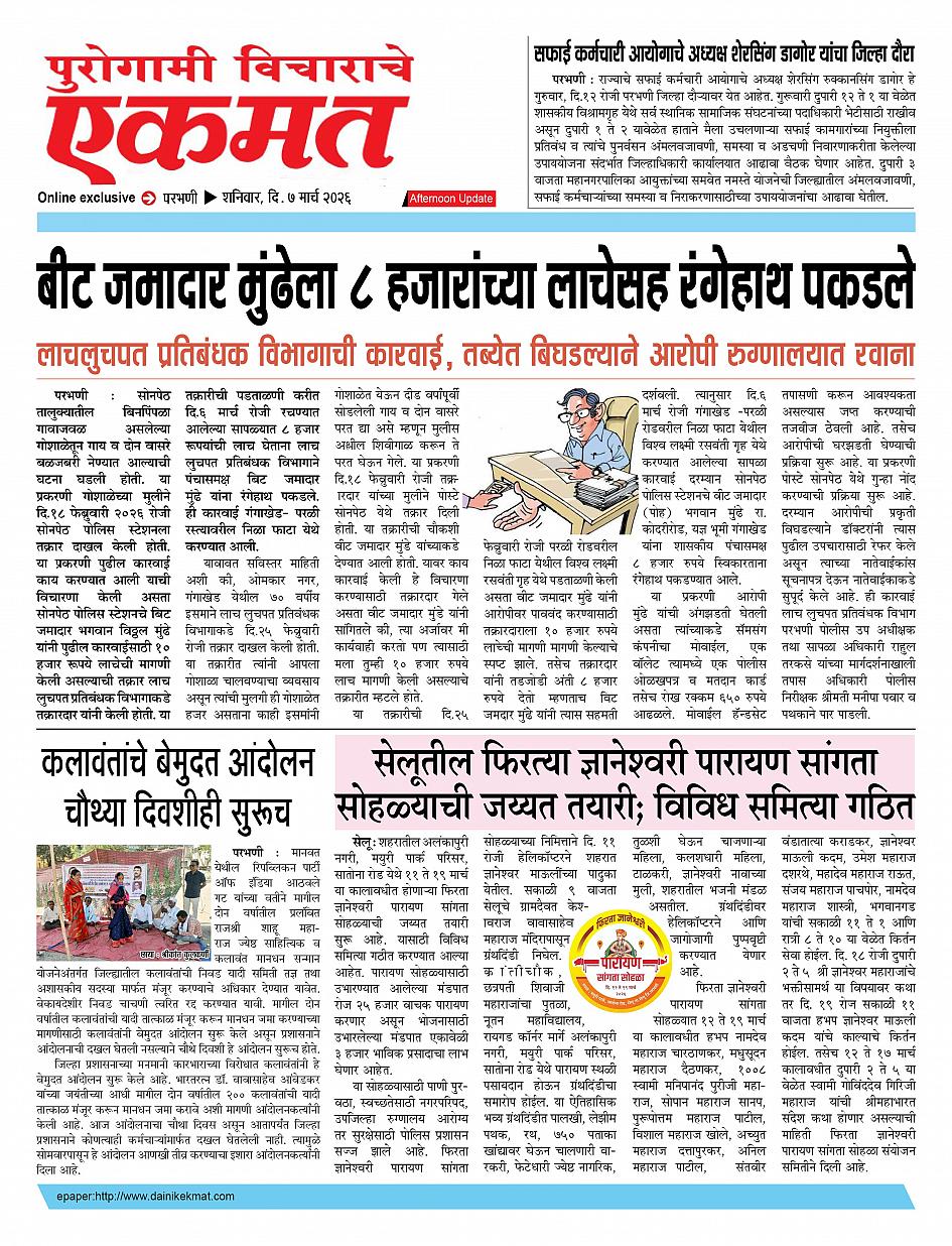 parbhani Afternoon March 07, 2026 Page 1 × parbhani Afternoon 7 March 2026 buletin 7 March 2026 buletin 7 March 2026 buletin