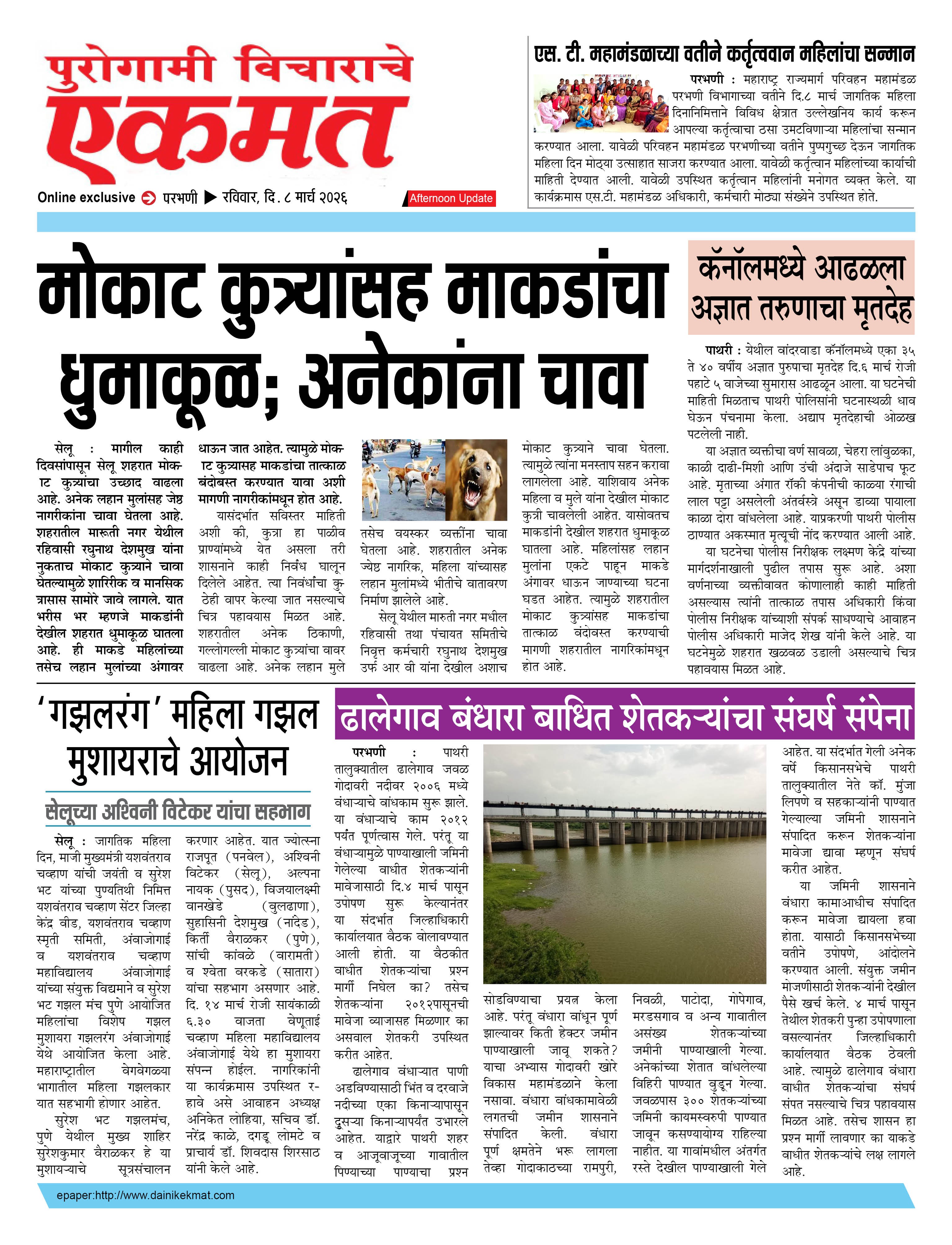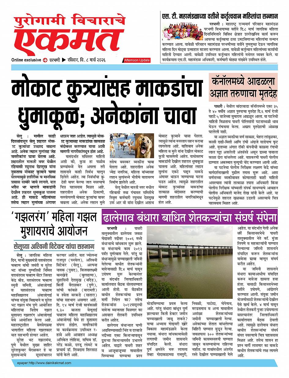parbhani Afternoon March 08, 2026 Page 1 × parbhani Afternoon 8 March 2026 buletin 8 March 2026 buletin 8 March 2026 buletin