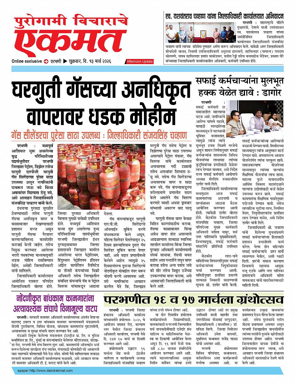 parbhani Afternoon March 13, 2026 Page 1 × parbhani Afternoon 13 March 2026 buletin 13 March 2026 buletin 13 March 2026 buletin