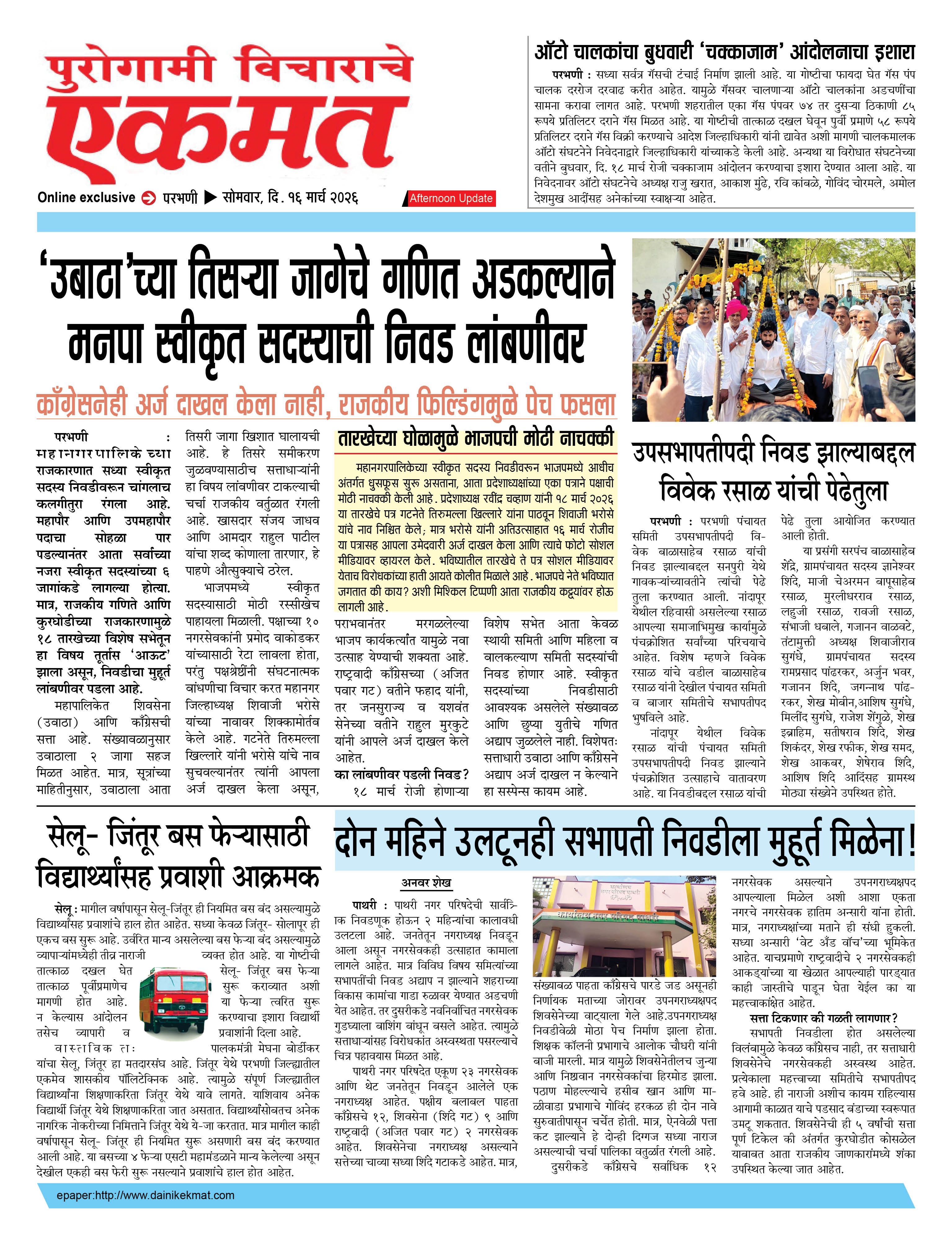 parbhani Afternoon March 16, 2026 Page 1 × parbhani Afternoon 16 March 2026 buletin 16 March 2026 buletin 16 March 2026 buletin