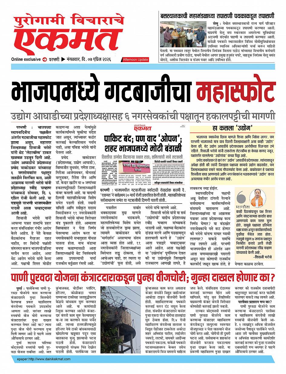 parbhani Afternoon April 07, 2026 Page 1 × parbhani Afternoon 07 April 2026 buletin 07 April 2026 buletin 07 April 2026 buletin