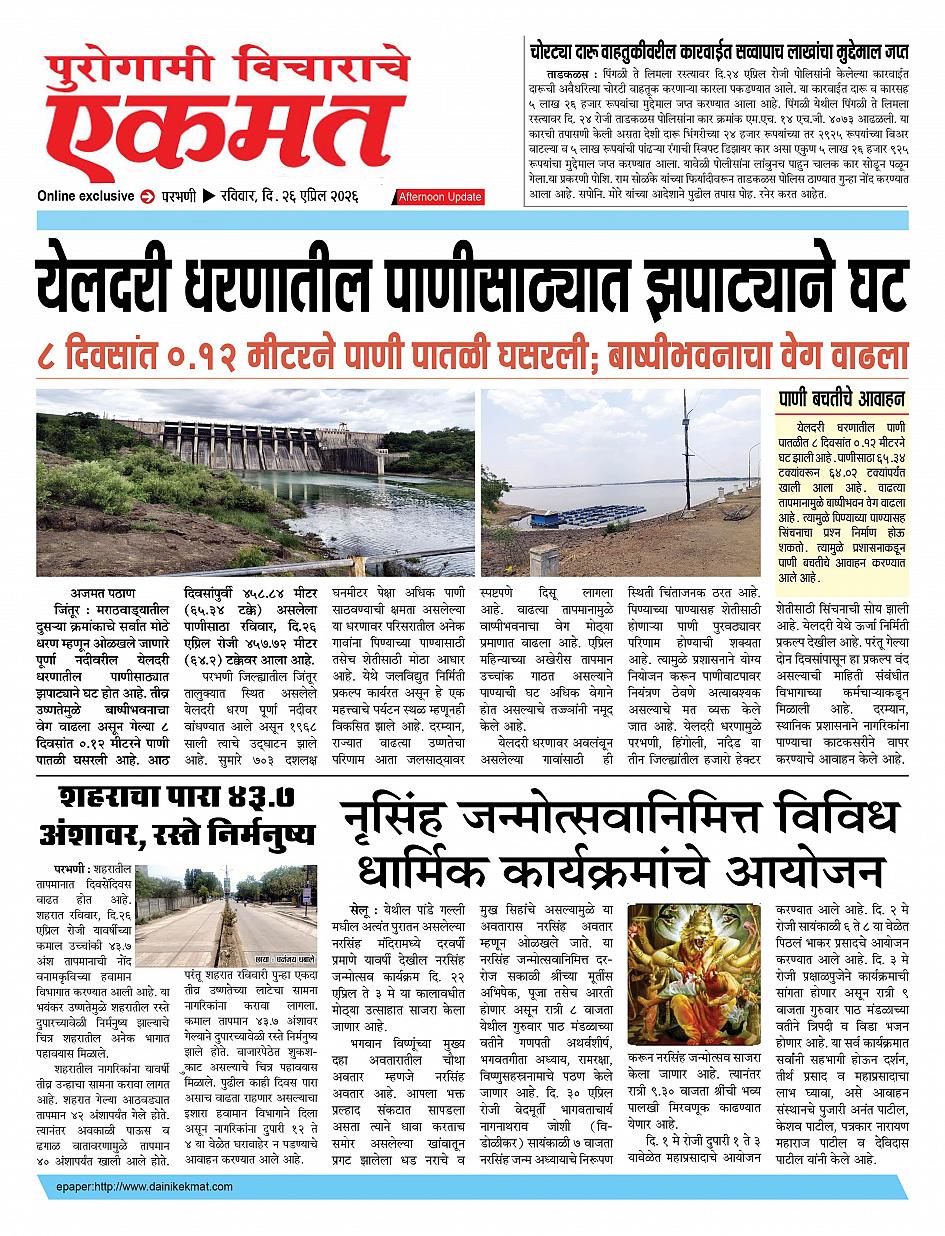 parbhani Afternoon April 26, 2026 Page 1 × parbhani Afternoon 26 April 2026 buletin 26 April 2026 buletin 26 April 2026 buletin